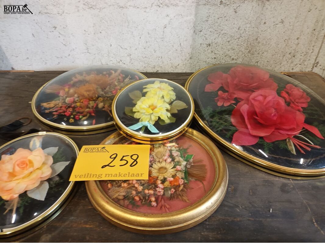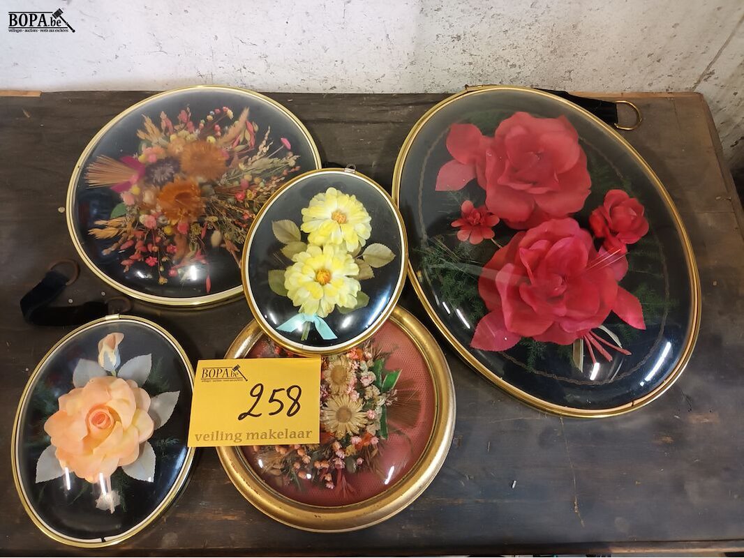 Lot 258 - bolle kaders met bloemen. 5 stuks