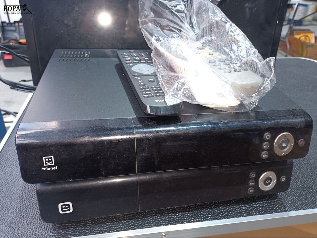 2 Telenet decoders en 1 Philips 24” scherm + 2 afstandsbedieningen.