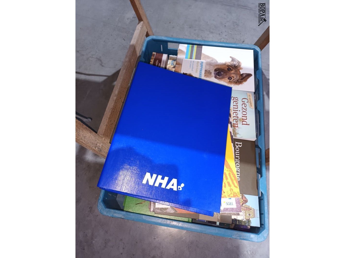 4 bakken met diverse boeken. Bakken niet inbegrepen.