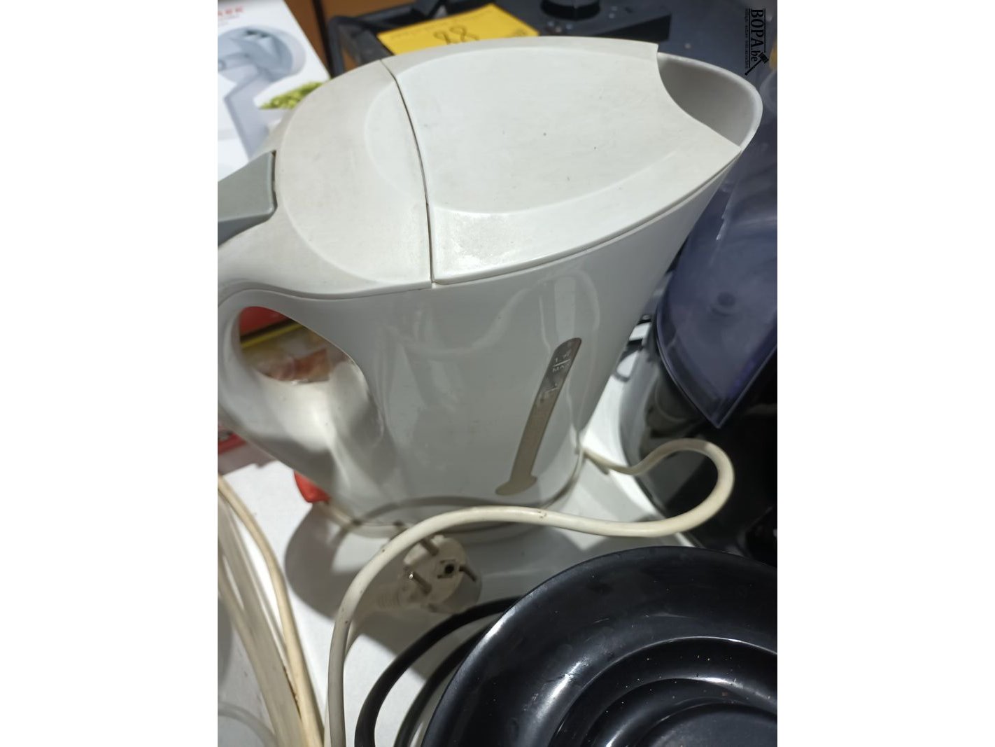 Keukentoestellen. 4 stuks. Broodrooster, sausmaker, waterkoker en koffiezetapparaat.