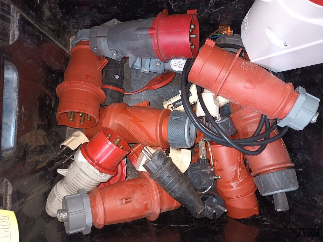 1 bak met stekkers en stopcontacten 400V.