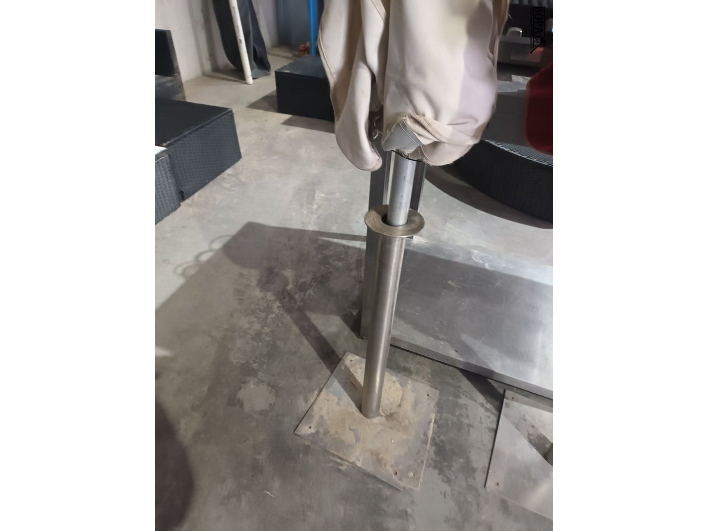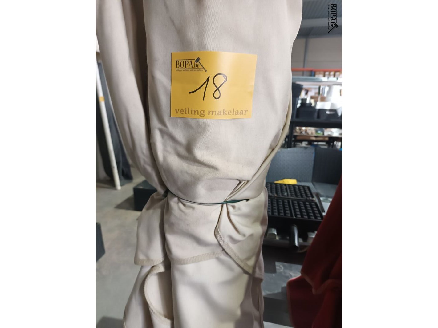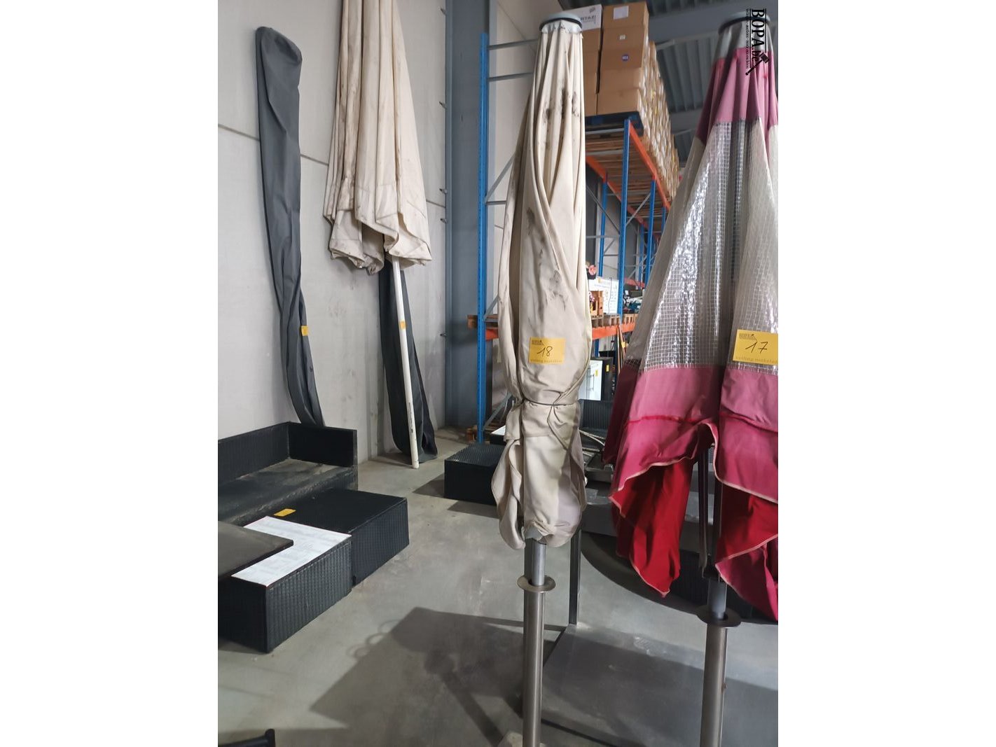 Parasol met voet. Hoogte 240 cm. Diameter 280 cm.