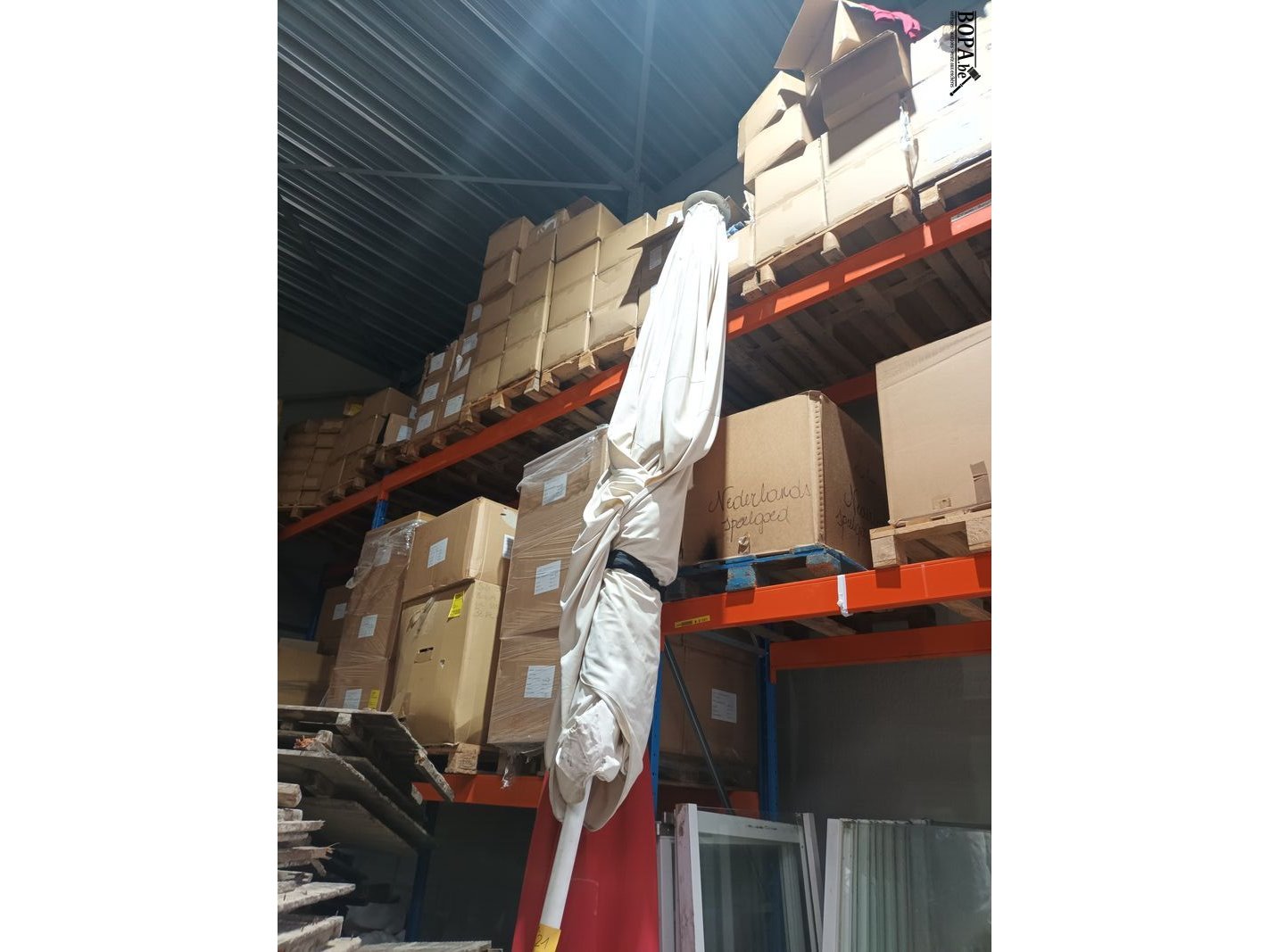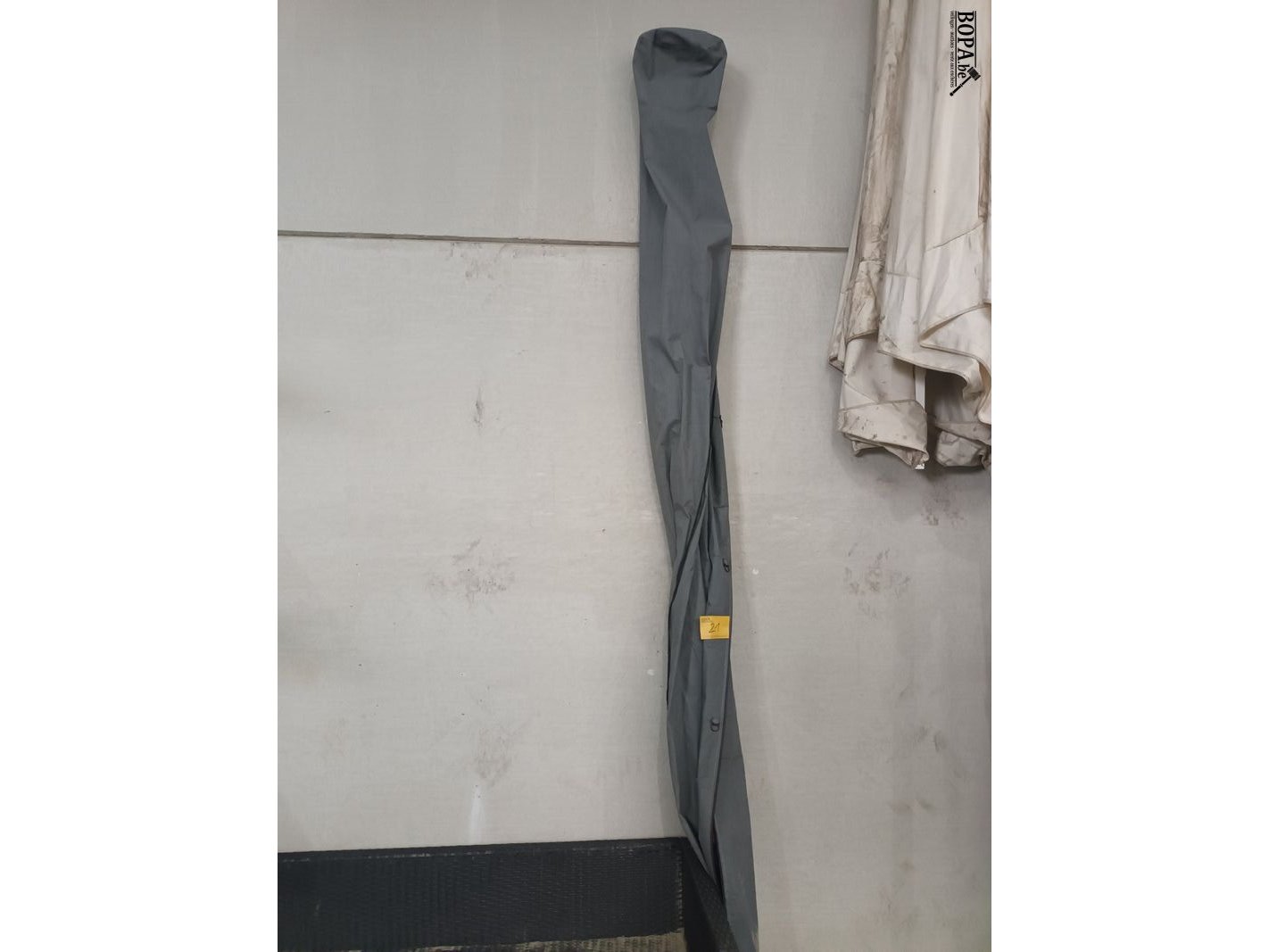 Zeer grote parasol met hoes. Hoogte 500 cm. Diameter 500 cm.