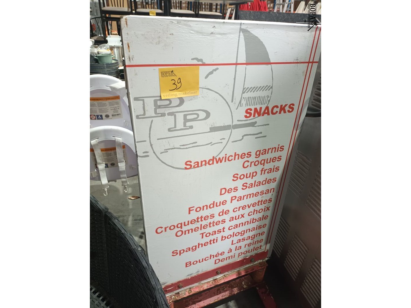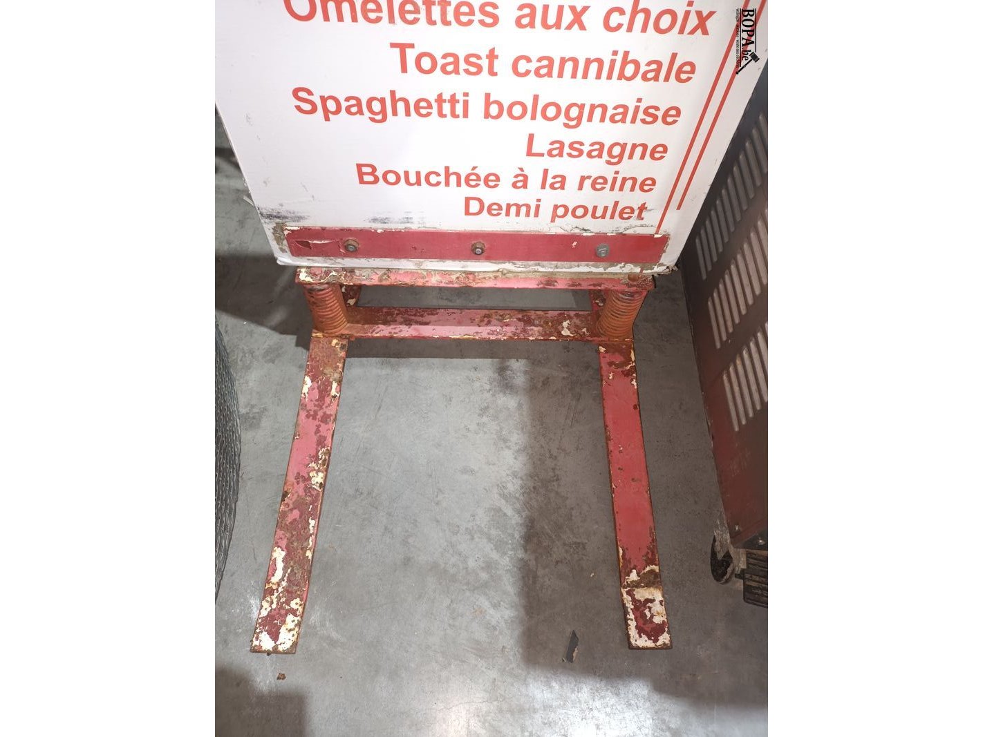 Dubbelzijdig stoepbord met metalen voet. 60 x 95 x 126 cm.