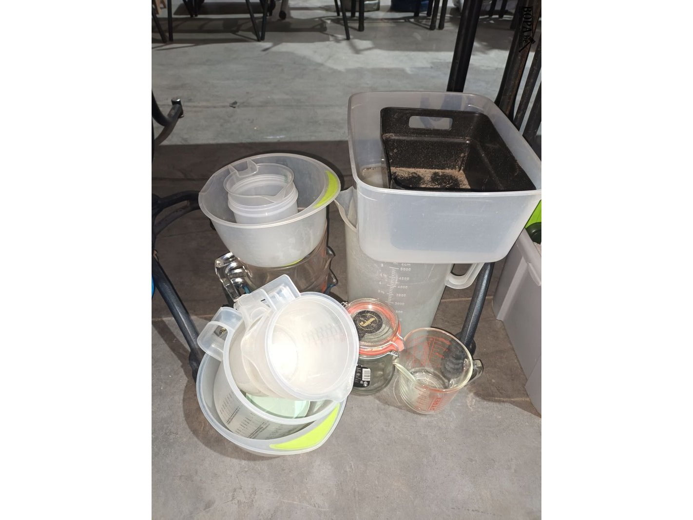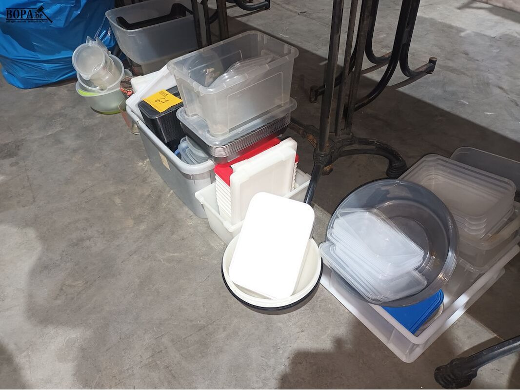 Kunststof bakken en dozen + maatbekers.