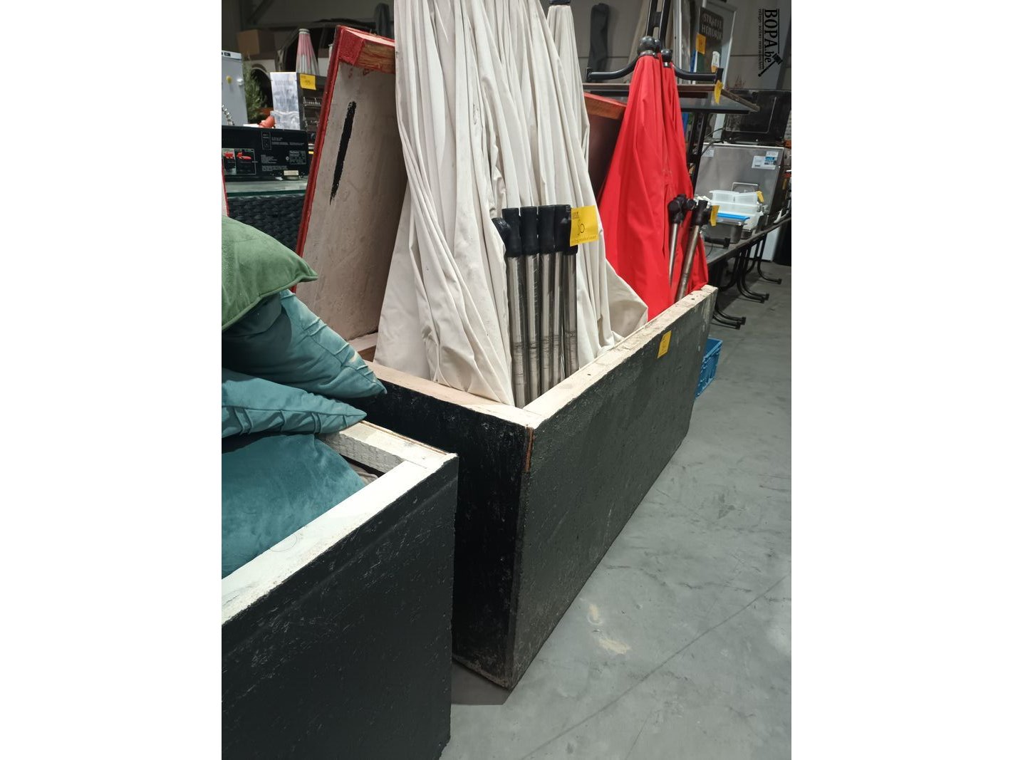 Houten bak met deksel. 166 x 62 x 77 cm.