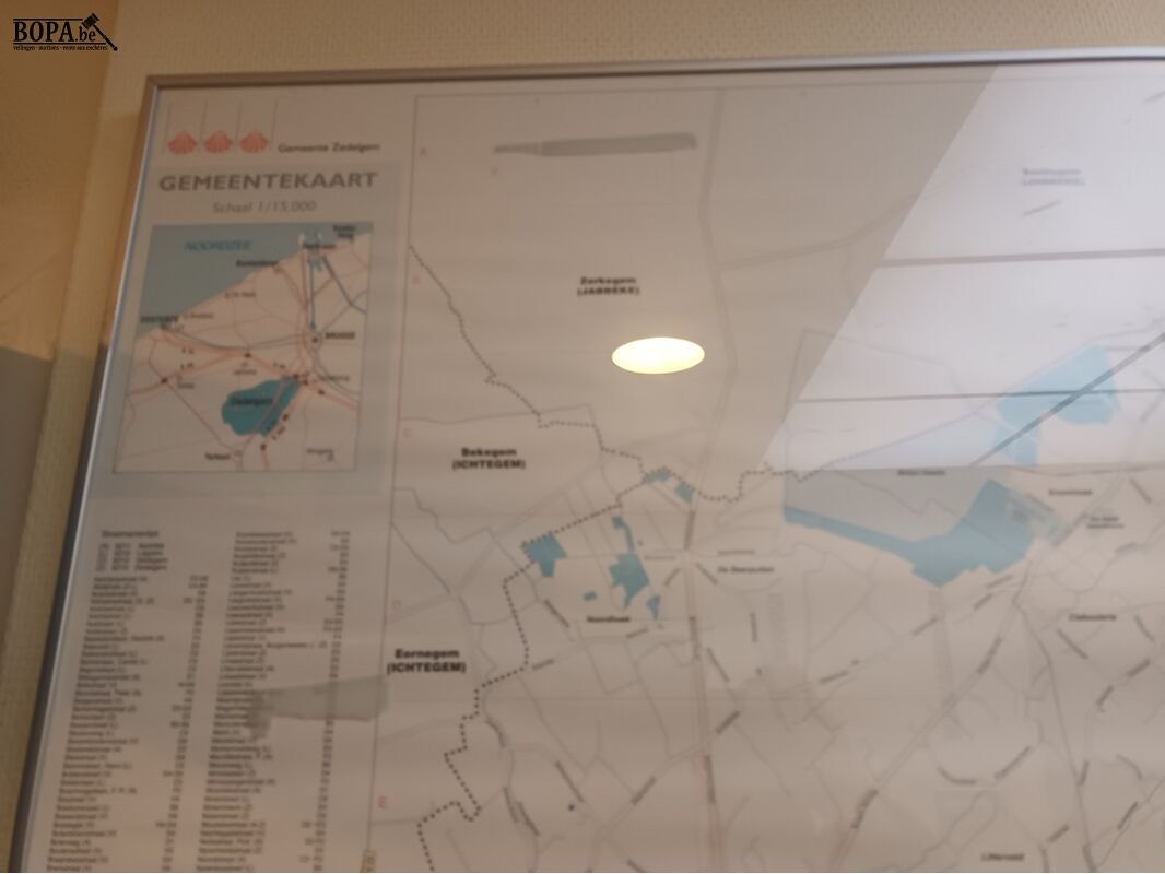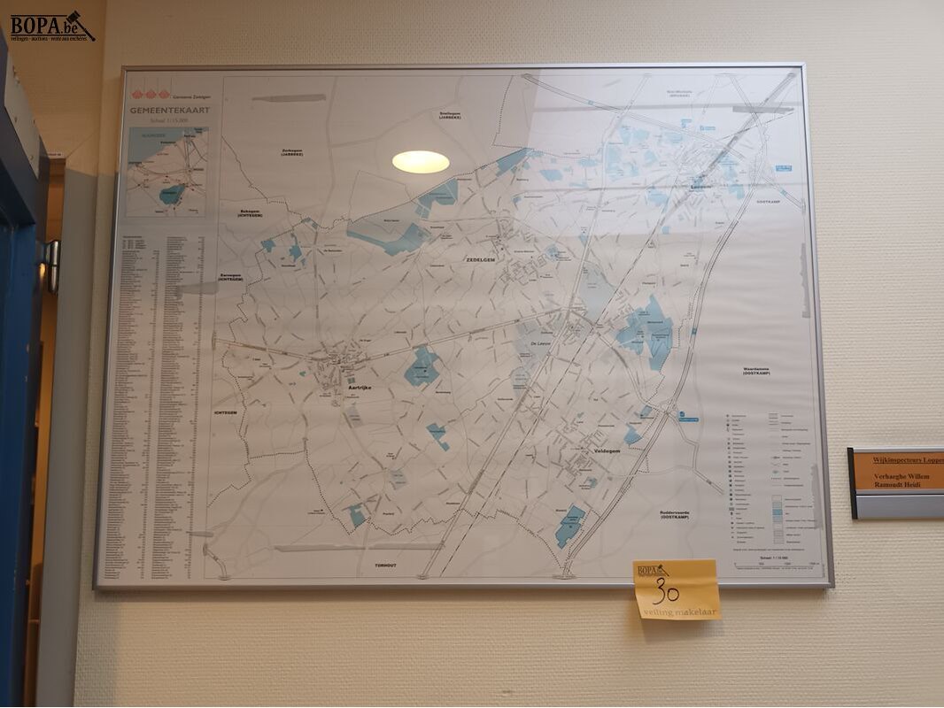 Gemeentekaart Zedelgem in kader. 95 x 70 cm.