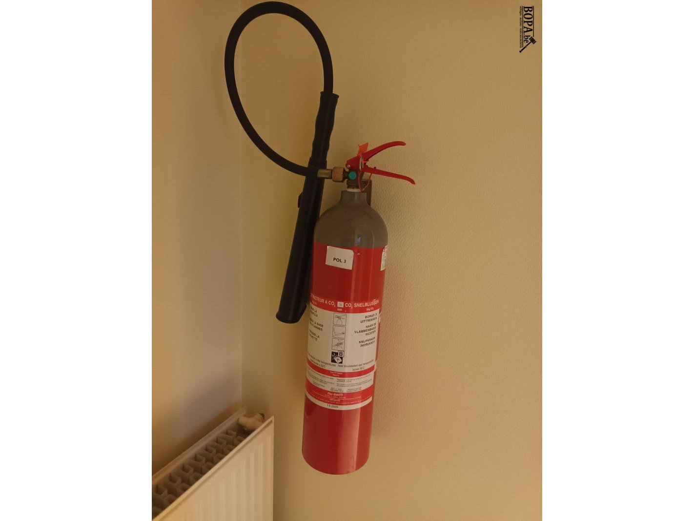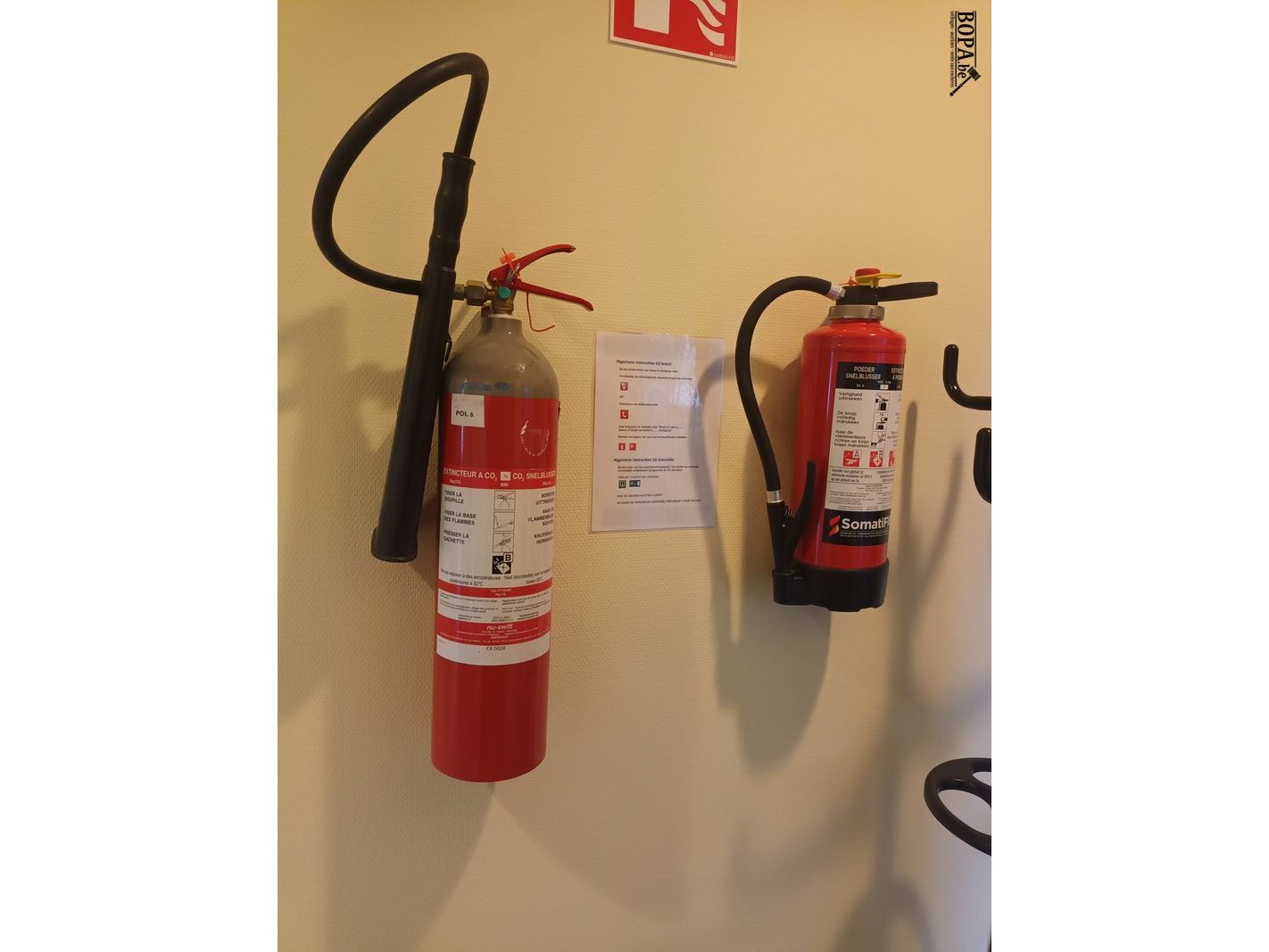 Brandblusapparaat. 6 stuks. 2 op elke verdieping.