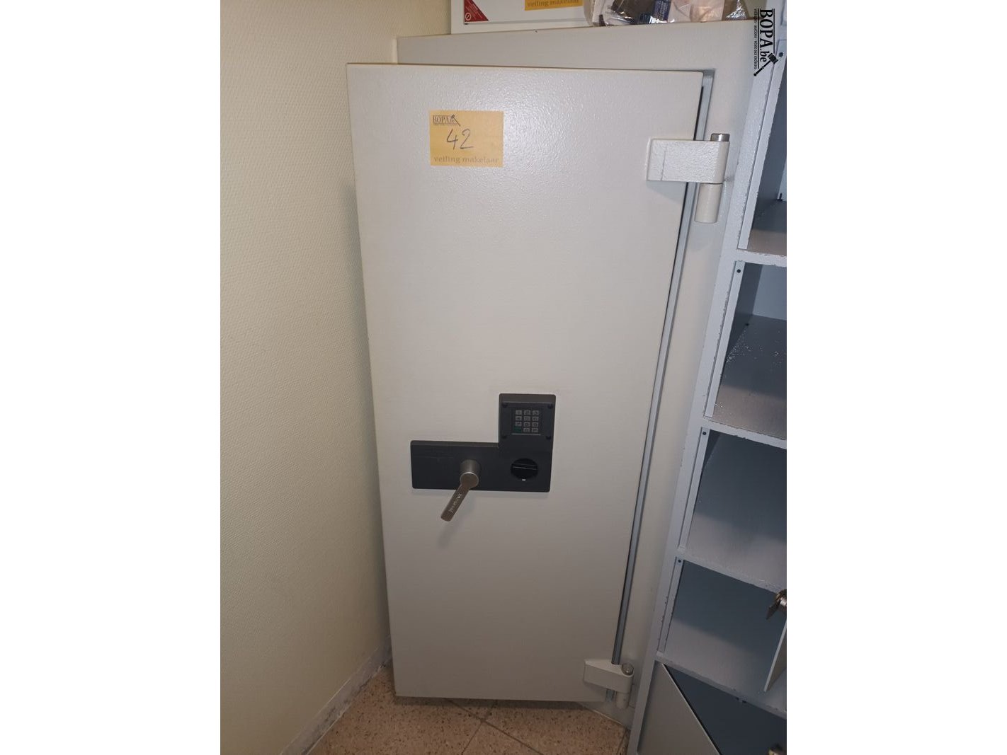 Kluis VdS. 60 x 53 x 145 cm. Nog los te maken van de muur en de kast.