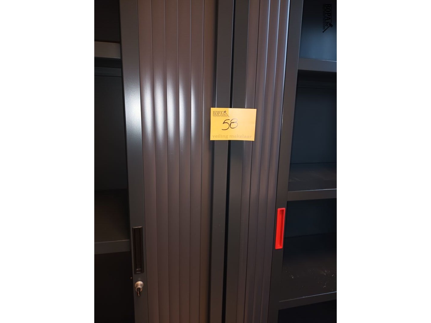 Hoge antraciet roldeurkast. 120 x 40 x 198 cm. 2 stuks. 1 met sleutel.
