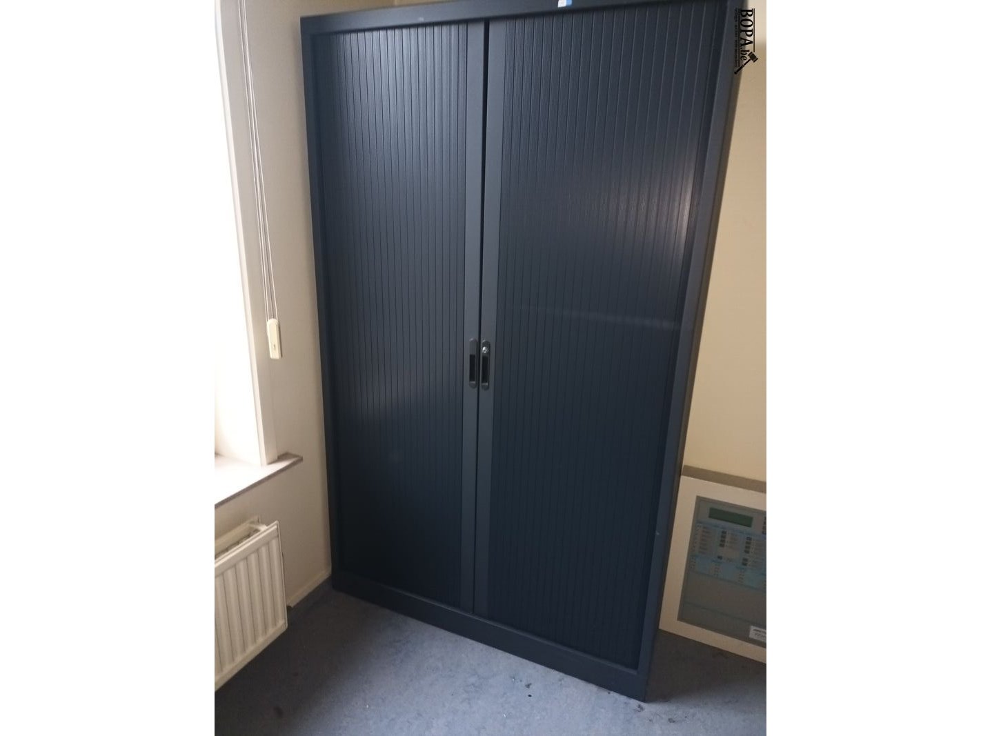 Hoge antraciet roldeurkast. 120 x 40 x 198 cm.