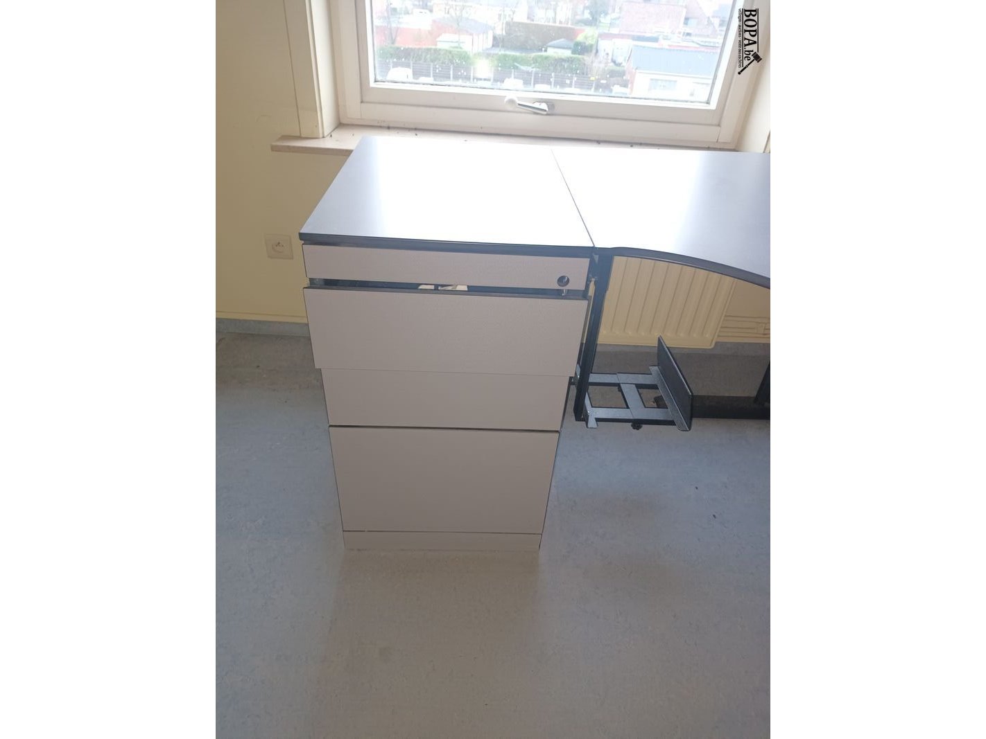 Hoekbureau met ladeblok. 180 x 165 x 74 cm.