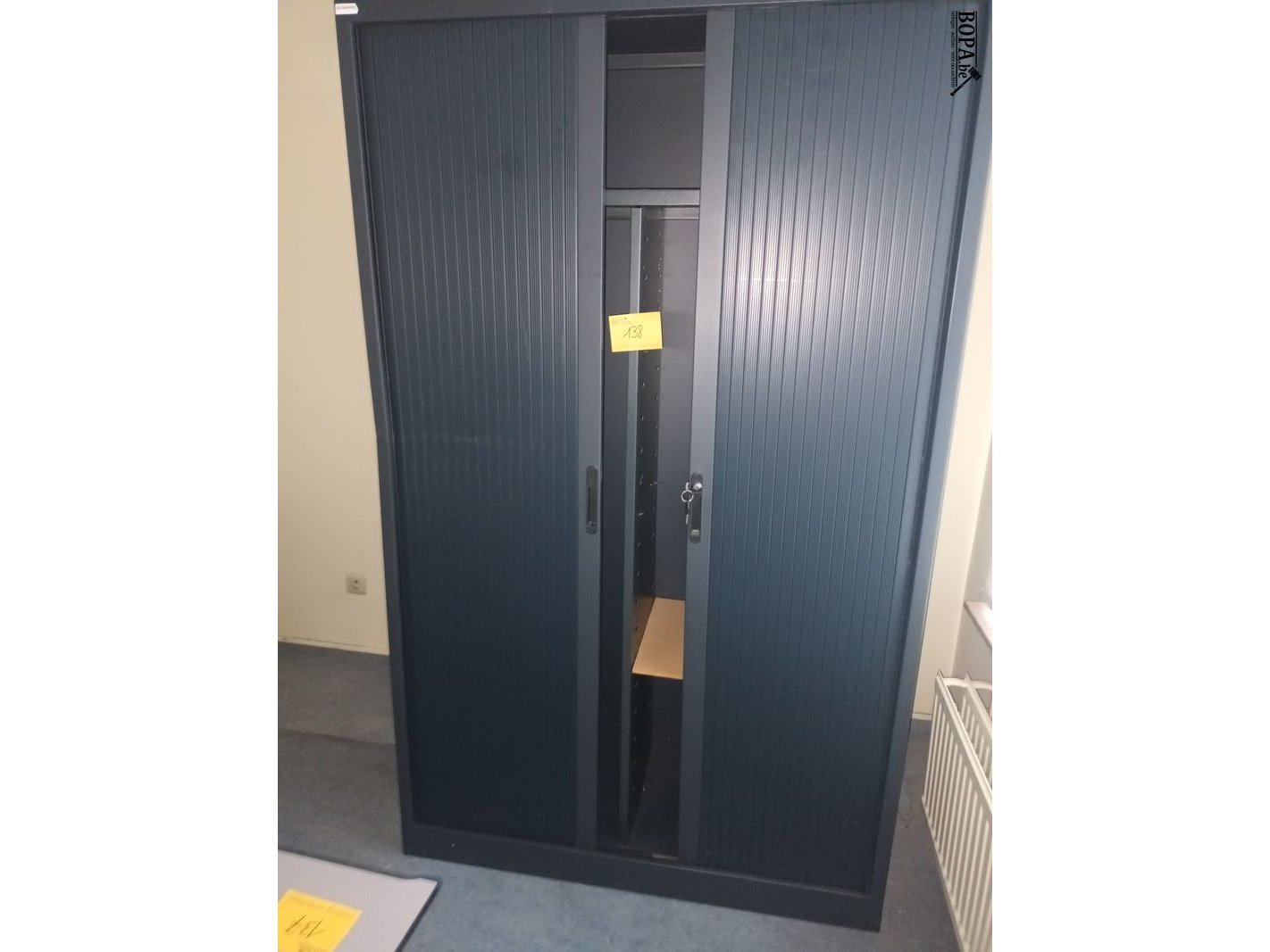 Hoge antraciet roldeurkast. 120 x 40 x 198 cm.