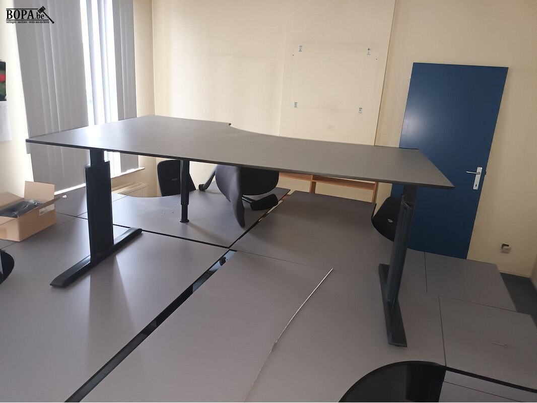 Hoekbureau. 5 stuks waarvan 4 met ladeblok (160 x 165 x 74 cm) en 1 zonder (180 x 120 x 74 cm).