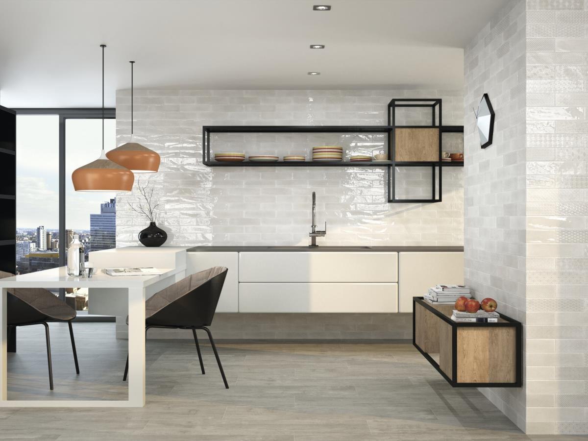 Coral White glossy 7.5x30cm, 48m2, 9mm dikte, decoratieve wandtegel, 1 pallet 80x120cm, 770kg