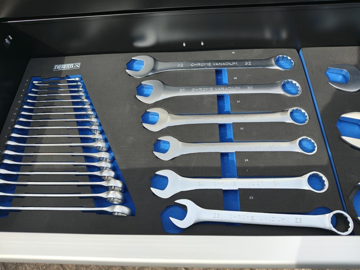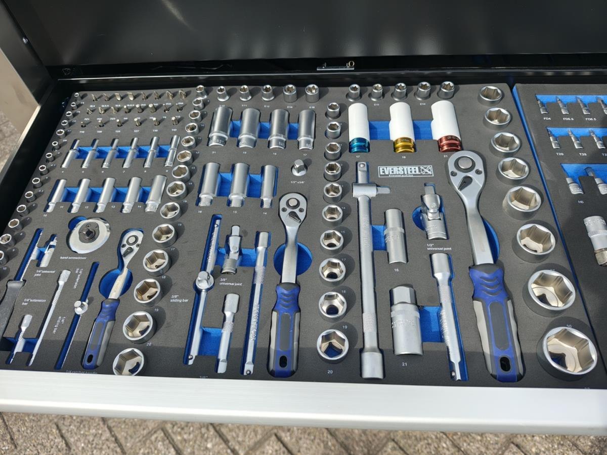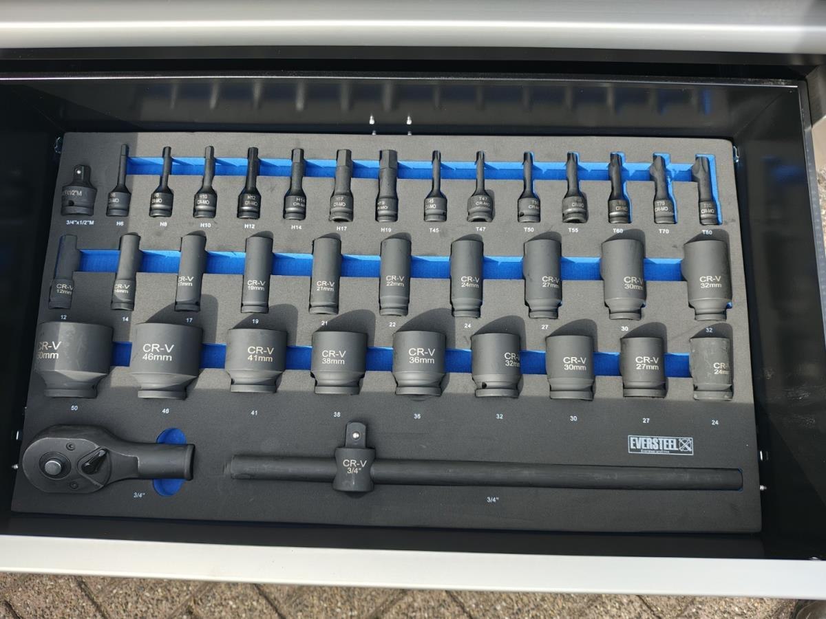 Grote gereedschapswagen met zwaar gereedschap tot 50mm, incl krachtdoppen. Ongebruikt in doos