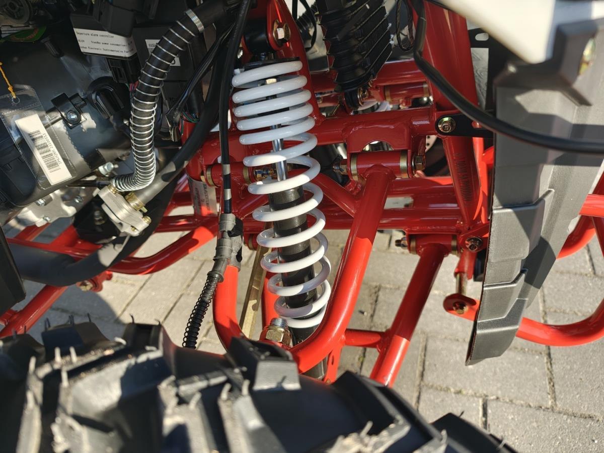 Ongebruikt AIII Commander 200CC Quad, Motortype: 200 CC, FNR, CVT, eencilinder, oliekoeling. Carburateur: PD24. Rijden: #530 kettingaandrijving. Ontsteking: Elektrische start. Maximum snelheid: 60 km/h. Tankinhoud: 6L/Staal. FR&RR Wielen: Fr: Stalen velg: 23×7-10" Rr: Stalen velg: 22×10-10" off-road banden. Snelheidsmeter: LCD-scherm. Schokdempers: hydraulische schokdempers. Rem: Fr &; Rr schijfrem. Stuur/Frame: Staal. Achterbrug: staal. Bagagerek: voor en achter (staal). Stuurbescherming: kunststof. Zithoogte: 79 cm. Draagvermogen: 150 kg. GW/ NW: 180 kg / 208 kg. Bodemvrijheid: 16 cm. Product afmetingen: 167 cm x 102 cm x 110 cm. Sleutel. LED dagrij verlichting. Trekoog voor. Trekhaak met 7-polige stekker 12V achter. wordt geleverd nieuw in doos.