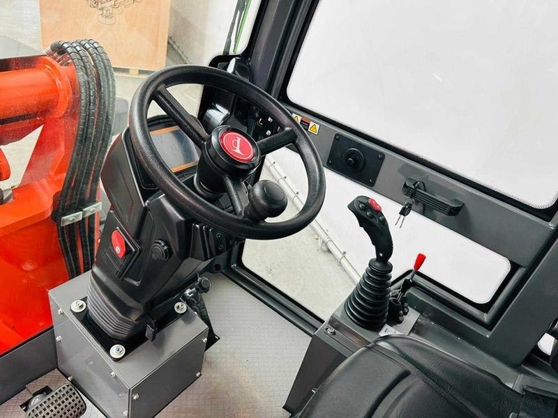 Algemene informatie - Ongebruikt; Kubota D1105 3 cilinder diesel EURO5; 4WD; Servo joystick; hydraulische snelwissel; rated load 600KG; V.v. graafbak; palletvorken; verlichting; cabine; ventilator; ruitenwisser; radio; eigengewicht 2000KG; Motor 18.20; 3800x1200x2320mm