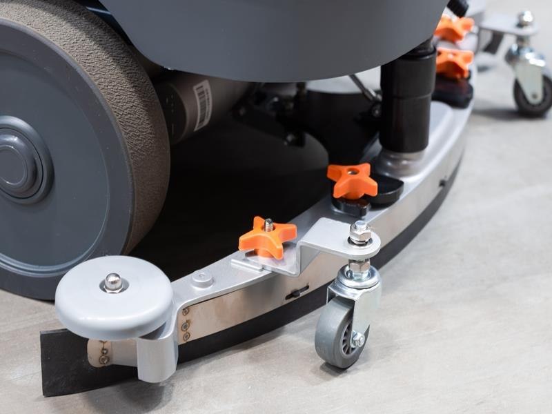 Algemene informatie - Working width: 560 mm - Squeegee width: 800 mm - Working capacity: 3500 m²/h - Disc brush: 1/560 Ømm - Disc brush rotations: 200 RPM - Brush motor: 24 V / 550 W - Maximum pressure on the brushes: 23 KG - Traction motor: 24 V / 500 W - Traction wheel: 2 / 225 Ømm / 64 mm - Maximum forward speed: 0-5.5 km/h - Maximum gradient with full load: 10 % - Suction vacuum: 1 / 24 V / 500 W - Solution tank: 700 Mbar - Front elastic wheel: 175 Ømm / 60 mm - Solution tank: 70 L - Recovery tank: 70 L - Steering diameter: 1980 mm - Machine length: 1265 mm - Machine length with optional item-holder tray: 1320 mm - Machine height: 1030 mm - Machine height with optional blinking light kit: 1230 mm - Machine width (without squeegee): 600 mm - Machine width (without squeegee) with optional tool-holder kit: 630 mm - Battery compartment (L*W*H): 362x354x290 mm - Rated battery voltage: 12 V / 100 Ah - Battery weight (max): 80 KG - Machine weight (empty and without batteries): 110 Kg - Gross weight in running order (machine + batteries + water + operator): 220 Kg - Pressure level: 65 dB (A)