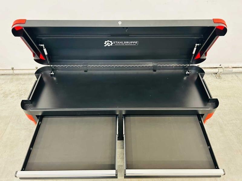 Algemene informatie - Kar met afneembare topbox; topbox met 8 laden en boven klep; Kar met 5 laden en kast met dubbele openslaande deuren; 13laden - 9 gevuld; 2 zwenkwielen waarvan 2 geremd; 7212