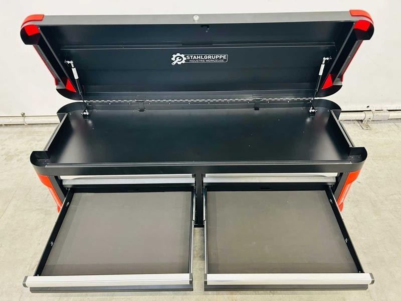 Algemene informatie - Kar met afneembare topbox; topbox met 8 laden en boven klep; Kar met 5 laden en kast met dubbele openslaande deuren; 13laden - 9 gevuld; 2 zwenkwielen waarvan 2 geremd; 7212