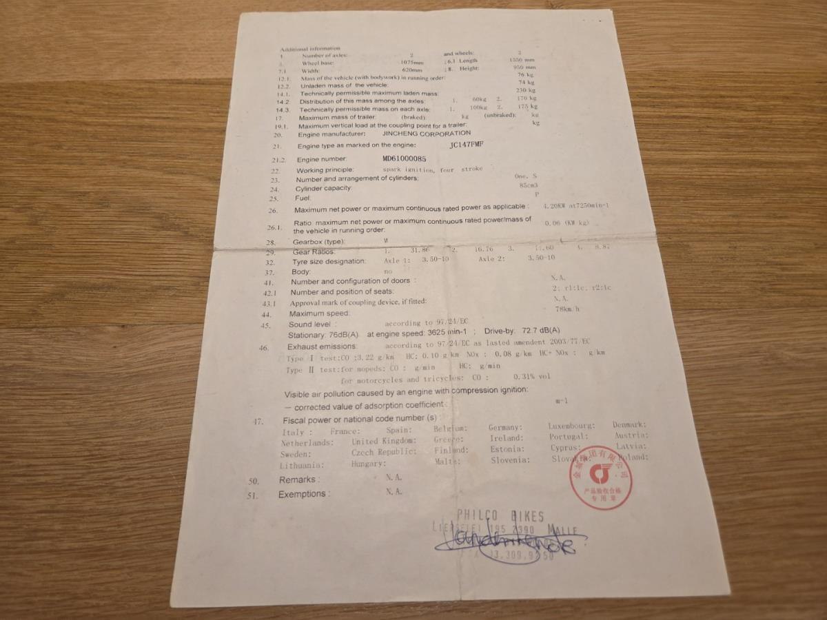 CHASSISNR LJCPCFLG061000054 vv Gelijkvormigheidsattest Geschikt voor 85cm³ cylinder Geschikt voor A1 klasse koper staat zelf in voor verkrijgen van nodige inschrijvingsdocumenten