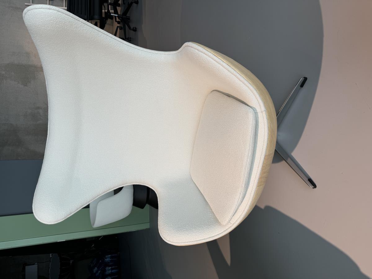 1x Egg Chair wit fineer frame, kasmier stof, vintage look, kruispoot, draaibaar onderstel, draai en kantelbaar Let op: Bij afhaling van de goederen dient u deze zorgvuldig te controleren. Indien u niet aanwezig bent op de afgesproken afhaaldag, worden extra kosten in rekening gebracht.