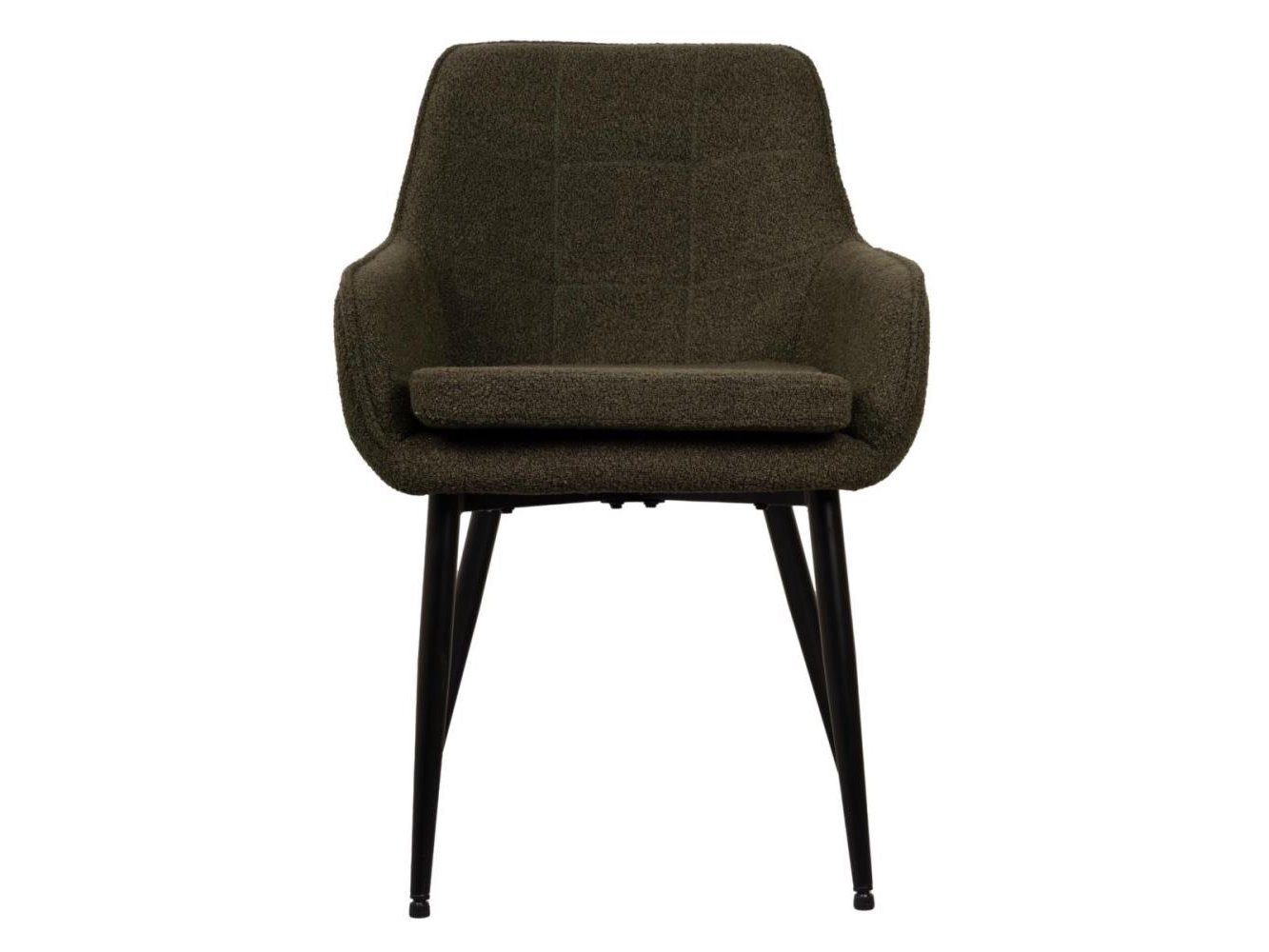 6x Design eetkamerstoelen, model: 21002-08, kleur: groen, boucle stof, geruit gestikt met verzwaard en gecoat onderstel