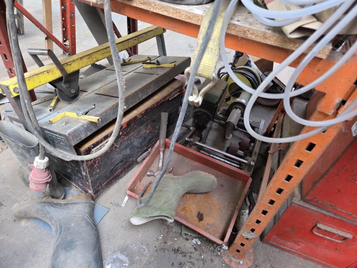 Bu gereedschappen, haspels, lood etc. Koper staat in voor de volledige ontruiming van dit lot.