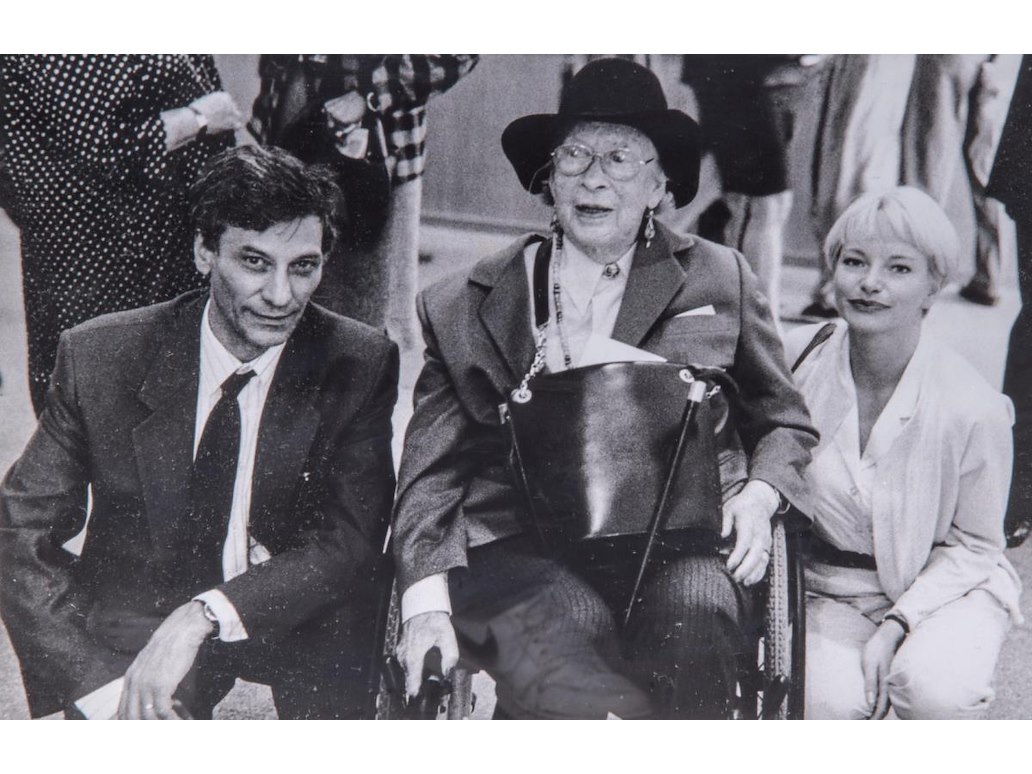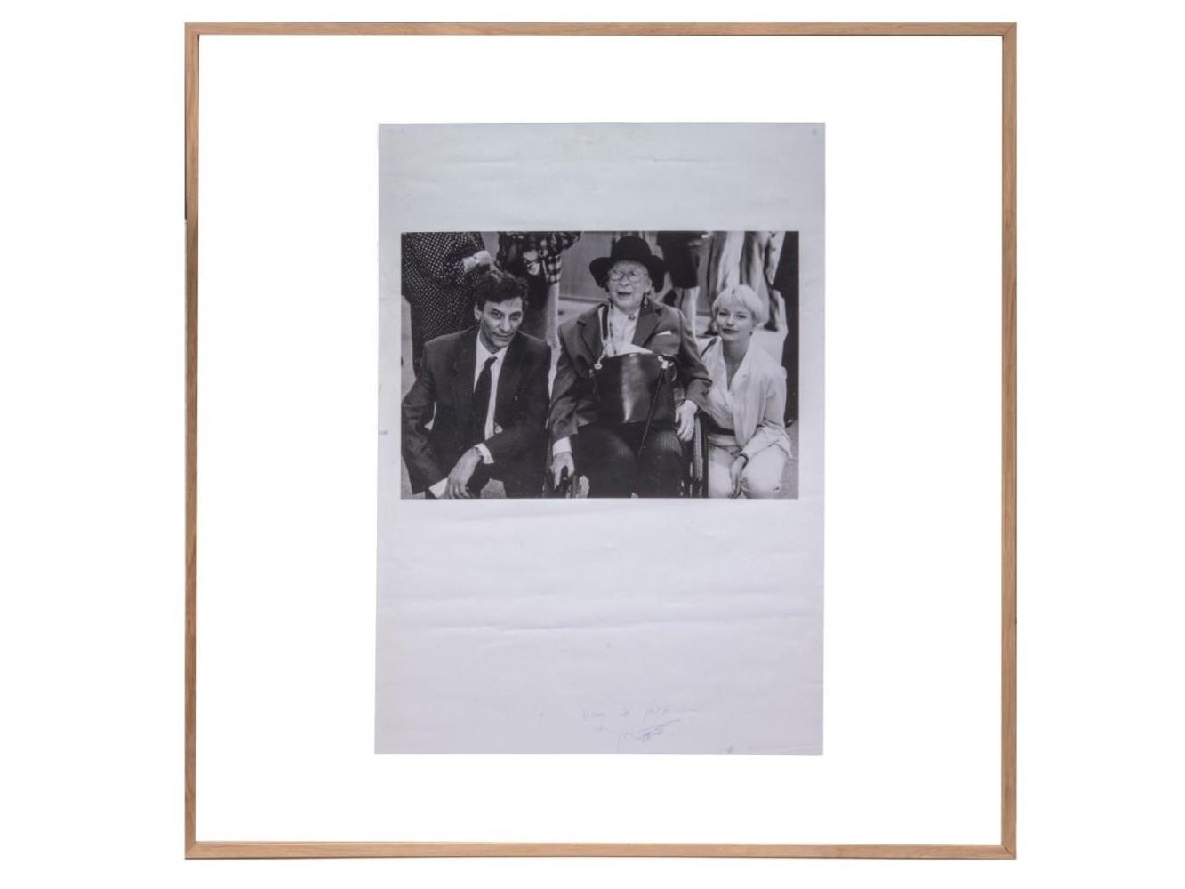 Foto opgedragen door Jan Fabre aan Jan Hoet - We zien Jan Hoet op de foto met de weduwe van Marcel Duchamp - Professioneel ingelijst - Herkomst: Collectie Jan Hoet - Galerijprijs: 2350 92x92 cm
