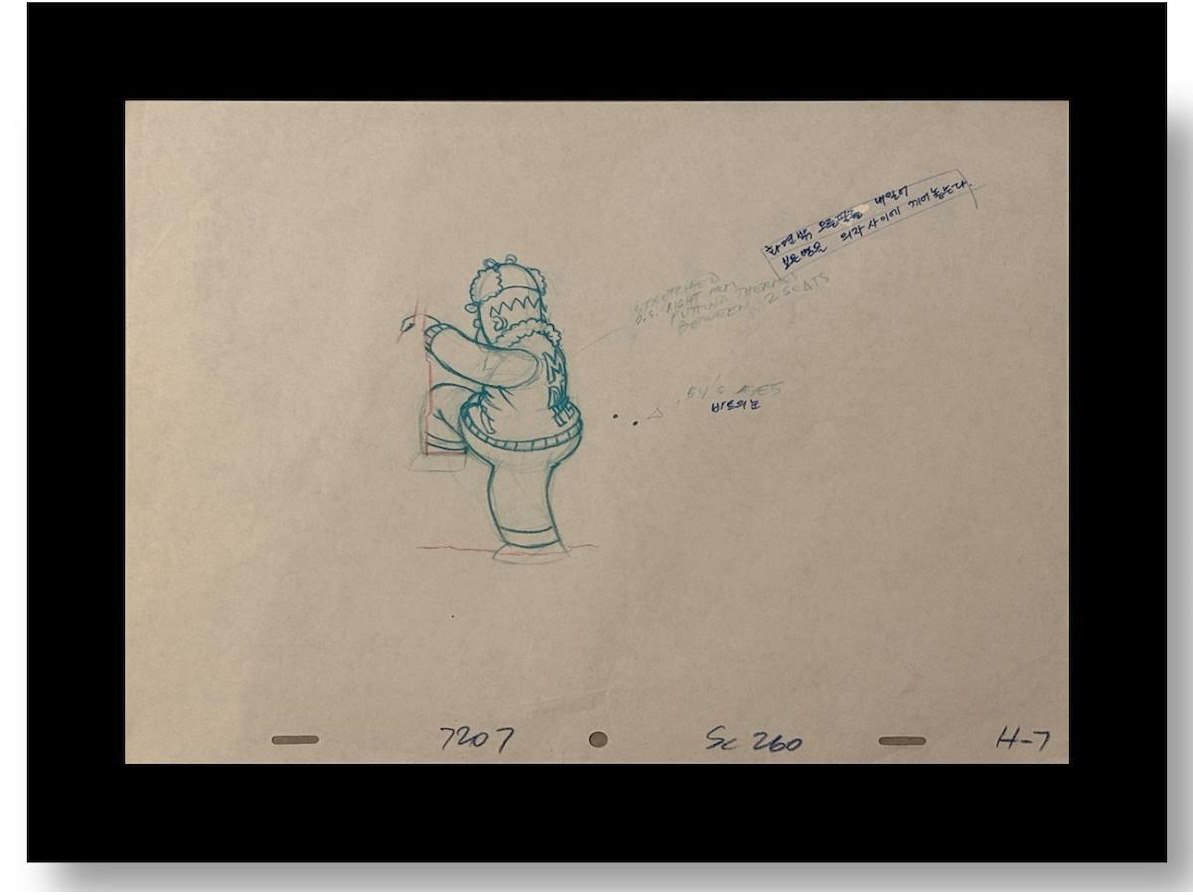 Originele tekening voor The Simpsons, galerieprijs 1500 euro, ingelijst, MET CERTIFICAAT
