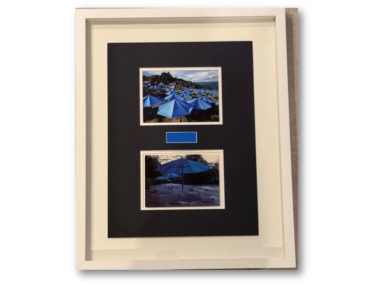 Umbrellas, Offset, gesigneerd, met stukje origineel stof van het project, professioneel ingelijst, galerieprijs 1450 €