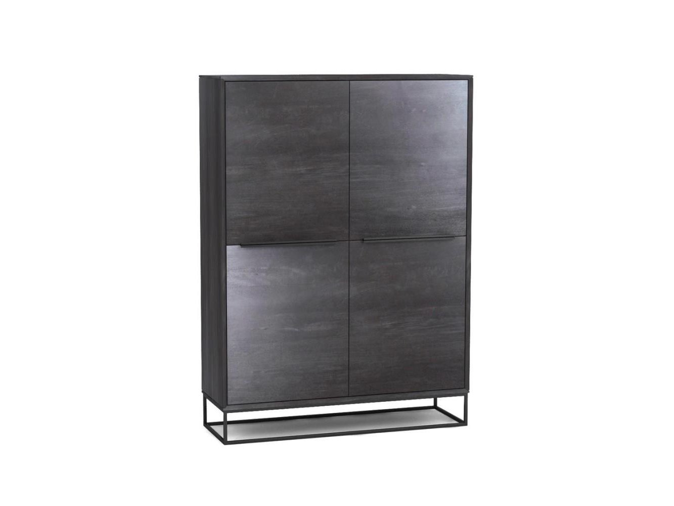 Barkast in zwart gekleurd mangohout 4 deuren 120x40xH165 cm