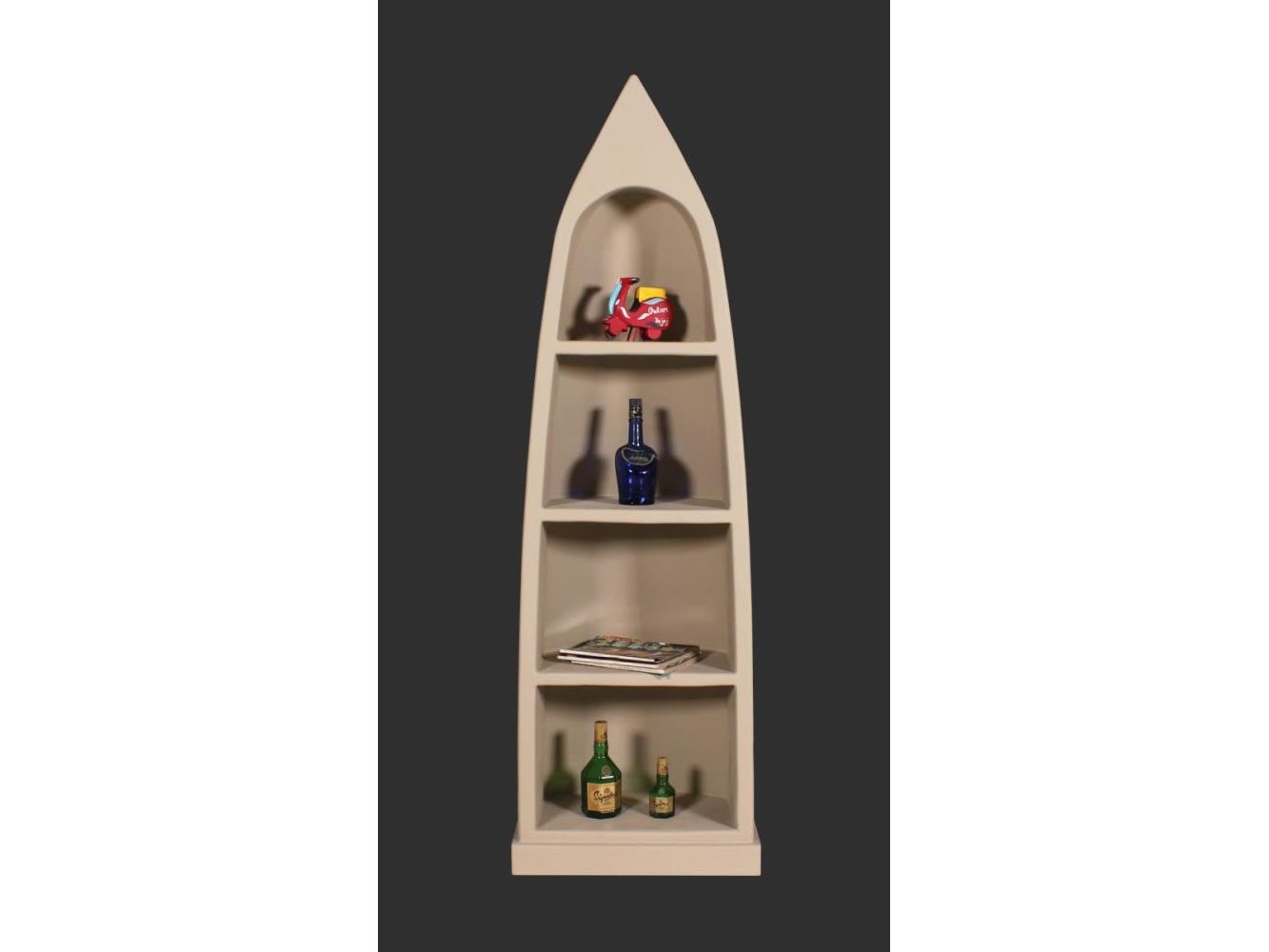 Boekenrek 'boot' in kalkmortel - wit 60x30xH190 cm