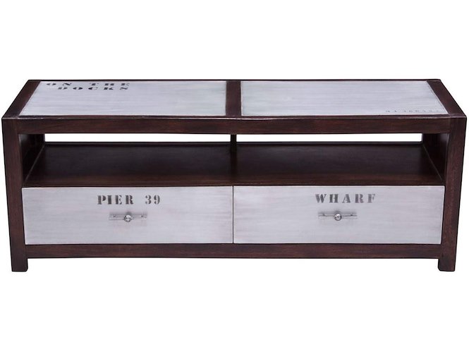 Tv-meubel uit tropisch mahoniehout en geborsteld aluminium 140 x 45 x 50 cm