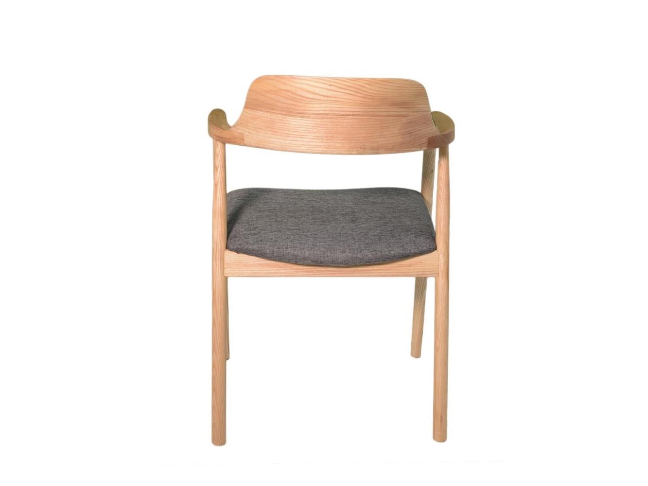 Armstoel in massief essenhout met grijze stoffen zit 55x58xH79 cm