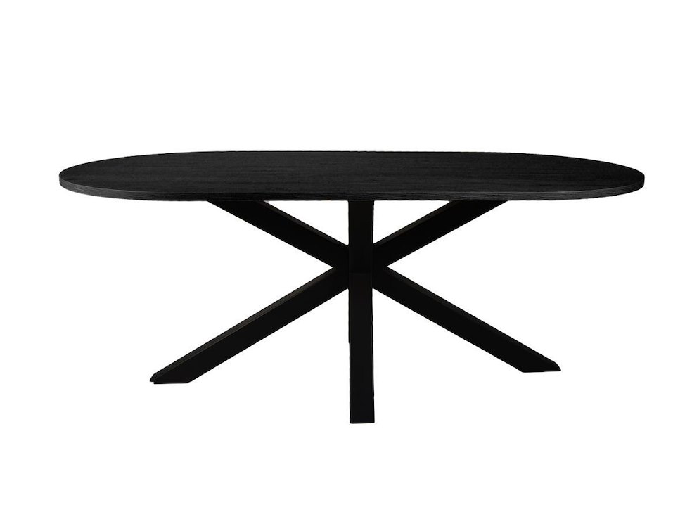 Deens ovale eettafel met metalen sterpoot in antraciet kleurige eik - 3D folie 200x100xH77 cm