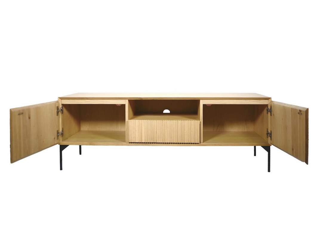 Tv-kast in massieve eik en eik fineer met twee deuren en één lade 150x45xH52 cm