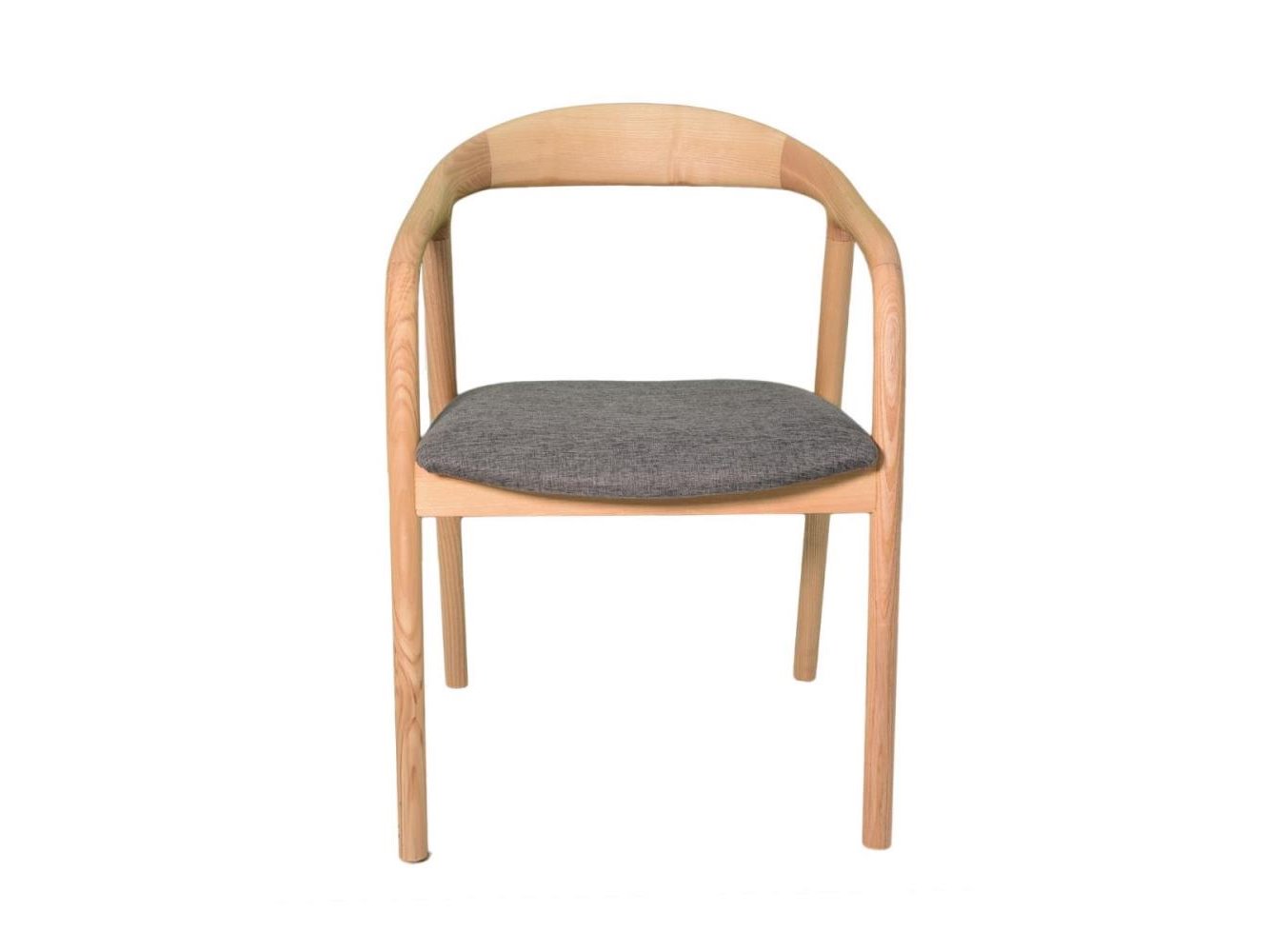 Armstoel in massief essenhout met grijze stoffen zit 55x56xH78 cm