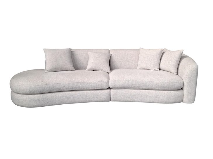 Toonzaalmodel L280 x D86 (rechts) D107 (links) x H75 cm / zitdiepte 60 cm / zithoogte 45 cm