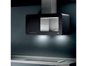 Afzuigkap,design,zwart glas/Inox,120 cm,afzuigcap.: 675 m³/u,led-verlichting