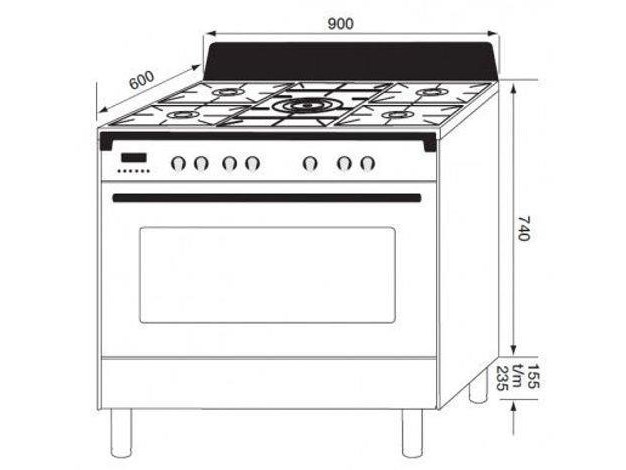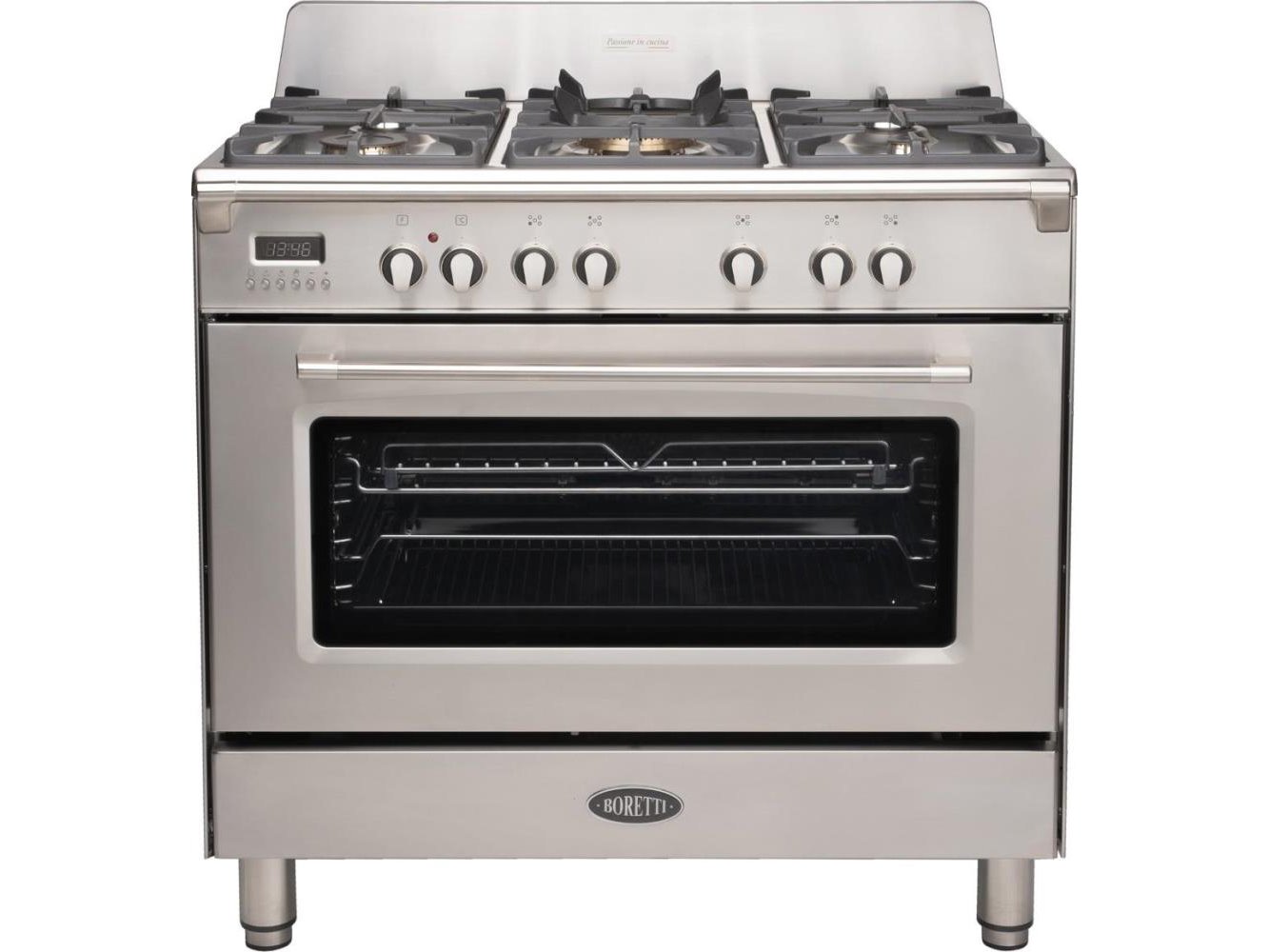 Fornuis,gas,5 branders,gietijzeren roosters,1 oven,inox (winkelprijs 2699 euro)