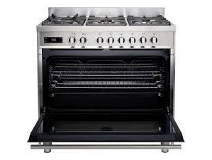 Fornuis,gas,6 branders,gietijzeren roosters,1 oven,inox (winkelprijs 3599 euro)