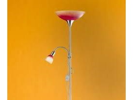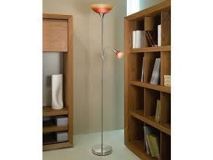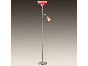Staande lamp,satijn/nikkel,oranje/rood glas,hoogte 178 cm