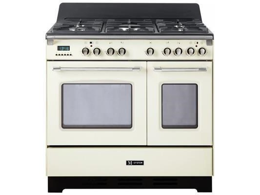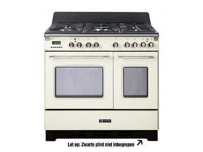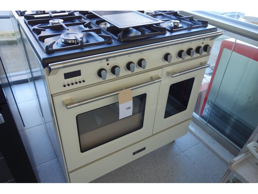 Fornuis,gas,90 cm,2 ovens,oud wit (creme)