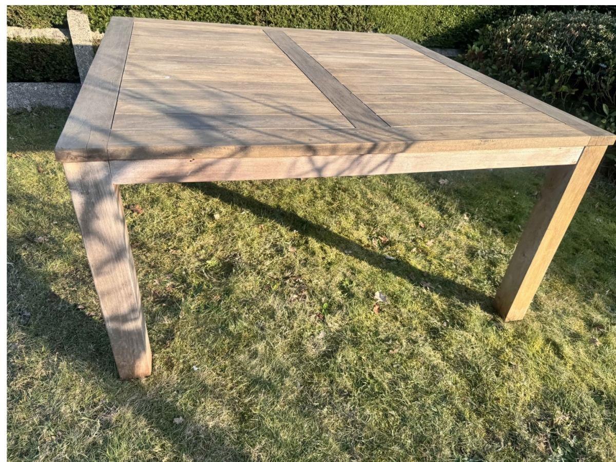 Deze sobere en moderne ‘blok’ tuintafel van massief teakhout, met haar pure lijnen en brede latten, biedt plaats voor 8 personen. Deze eettafel voor buiten is gemaakt van massief robuust teakhout, een echte waarborg voor kwaliteit. Tijdloos, sober ontwerp. Het hout is afkomstig van duurzaam beheerde bossen. Dik tafelblad en poten. De vierkante vorm zorgt automatisch voor een gezellige sfeer. Afmetingen: 150 x 150 x 77 cm.