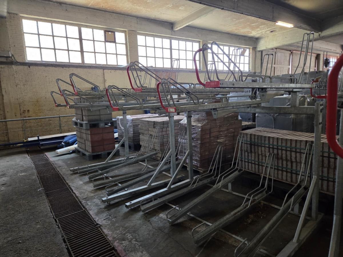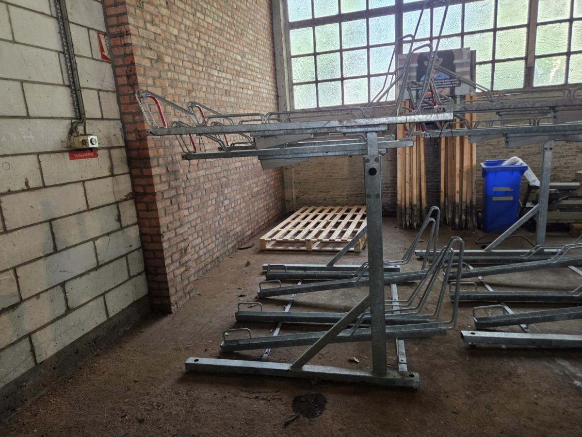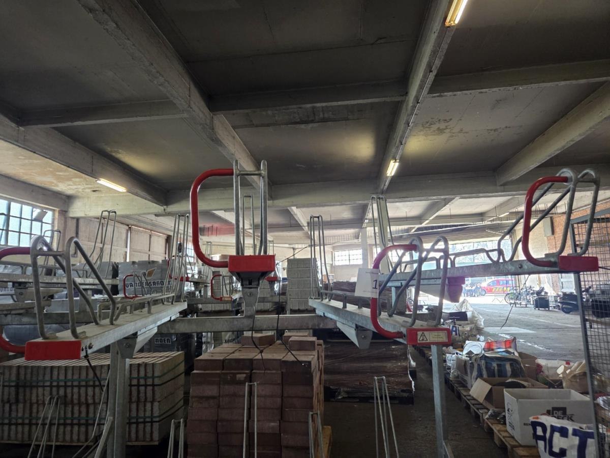8 Fietsen per rek, de bovenste fietsrekken zijn eenvoudig met de hand naar beneden te trekken om de fiets op te zetten.