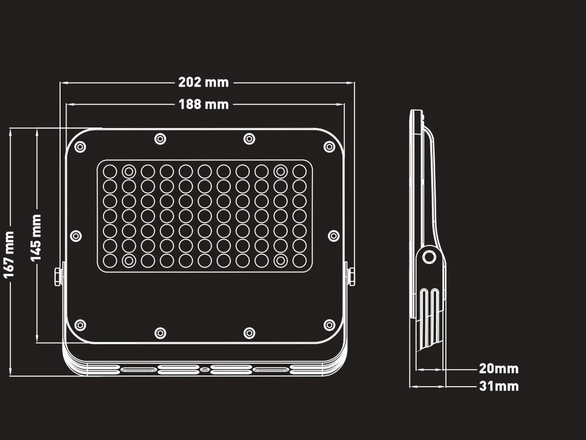 12 x 50W 5000K LED Breedstralers met Lens Waterdicht - lichtstroom 4800 lumen - lichtkleur daglicht 5000K - waterdicht IP65 - stralingshoek 90° - product kleur zand zwart - afm 202 x 145 x 31mm - materiaal aluminium en PC lens - met lens nauwkeurige lichtbundels zonder verspilling voor maximale helderheid - bescherming tegen mechanische inslagen IK07 - bevestigingsset niet inclusief - levensduur 30.000 uren - voltage 200-240V - sku 1107