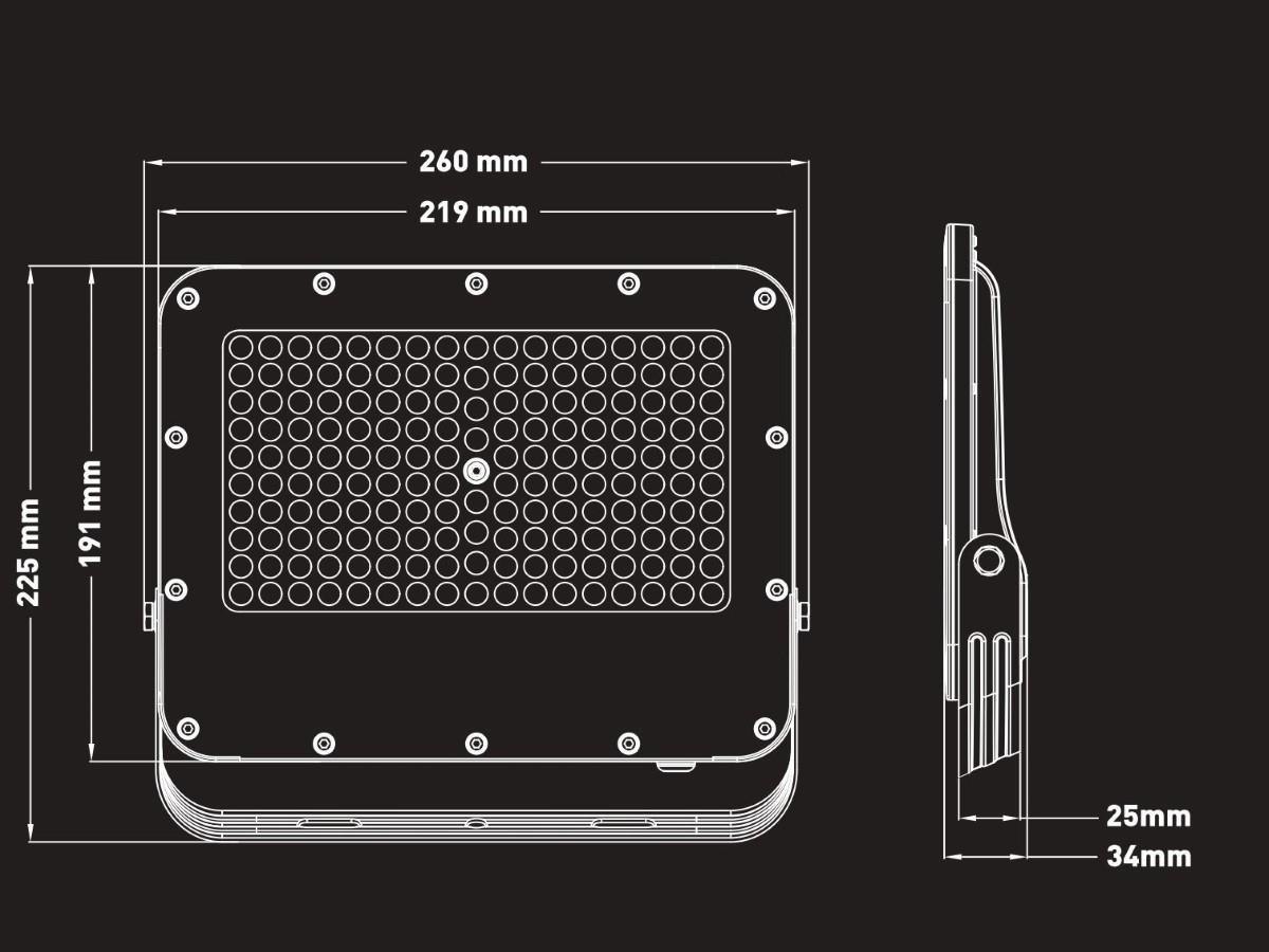 8 x 100W 3000K LED Breedstralers met Lens Waterdicht - lichtstroom 9400 lumen - lichtkleur warm wit 3000K - waterdicht IP65 - stralingshoek 90° - product kleur zand zwart - afm 260 x 191 x 34mm - materiaal aluminium en PC lens - met lens nauwkeurige lichtbundels zonder verspilling voor maximale helderheid - bescherming tegen mechanische inslagen IK07 - bevestigingsset niet inclusief - levensduur 30.000 uren - voltage 200-240V - sku 1108