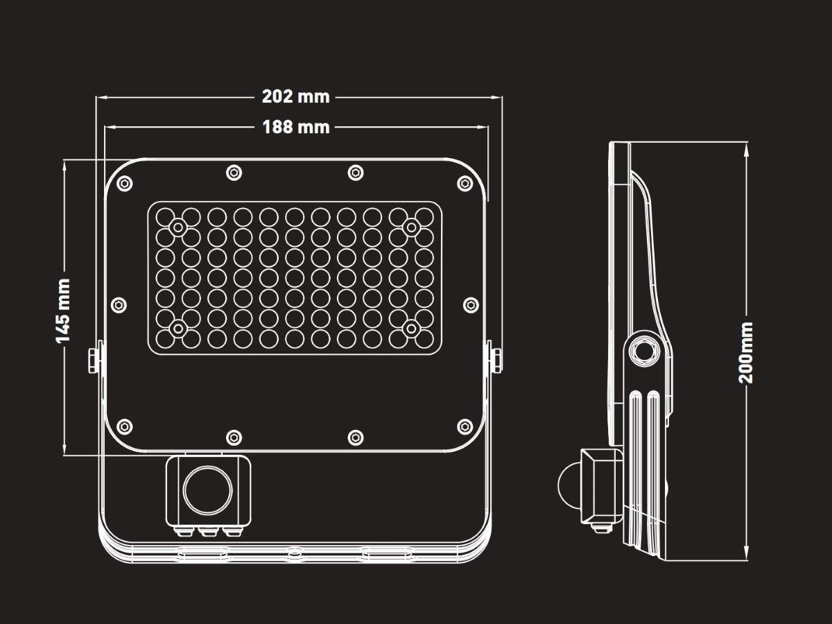 8 x 50W 5000K LED Breedstralers met Sensor en Lens Waterdicht - lichtstroom 4800 lumen - lichtkleur daglicht 5000K - waterdicht IP65 - stralingshoek 90° - product kleur zand zwart - afm 202 x 200 x 31mm - materiaal aluminium en PC lens - draaibaar bewegingssensor - verstelbare sensor gevoeligheid afstand 2m tot 10 - verstelbare verlichtingstijd 10 sec tot 7 min - verstelbare dag en nachtsensor - met lens nauwkeurige lichtbundels zonder verspilling voor maximale helderheid - bescherming tegen mechanische inslagen IK07 - bevestigingsset niet inclusief - levensduur 30.000 uren - voltage 200-240V - sku 1114